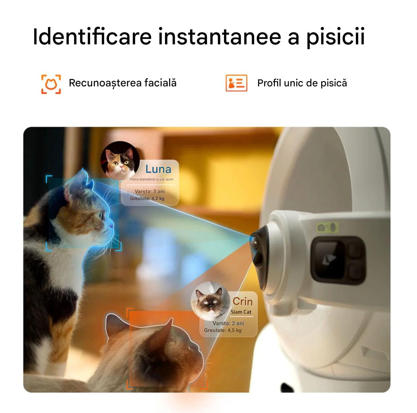 Recomandată de veterinari, această toaletă automată pentru pisici este dotată cu o cameră inteligentă alimentată de inteligență artificială. Aplicația inteligentă vă oferă date complete despre sănătatea pisicii, de la greutatea sa până la analiza stării de sănătate pe baza scaunului sau urinei. De asemenea, poate recunoaște automat care pisică o folosește, ideal pentru gospodăriile cu mai multe pisici.