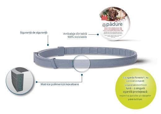 Zgarda antiparazitară Foresto nu este doar o zgardă obișnuită împotriva puricilor și căpușelor. Conține un amestec de materiale nou dezvoltate, care permite eliberarea sigură și controlată a unor doze mici de substanțe active ce resping aceste insecte, pe o perioadă de până la 8 luni.